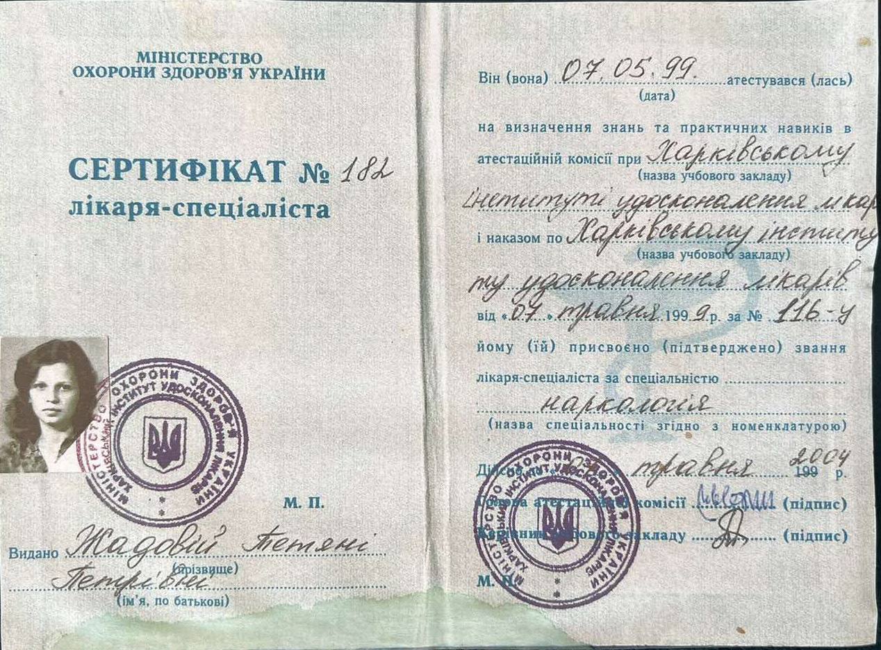 Лікар нарколог вищої категорії